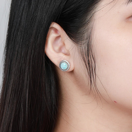925 Sterling Silver Jewelry Gift Classic Natural Precious Larimar Earrings for Women