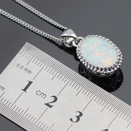 4-Piece White Opal 925 Sterling Silver Jewelry Set – Necklace, Earrings, and Ring