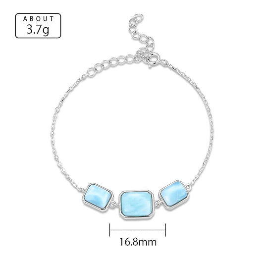 925 Silver Gift Natural Blue Larimar Square Bracelet