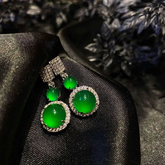 925 Sterling Silver Inlaid Ice Green Jade Earrings | Natural Stone Earrings | Elegant Gift for Women